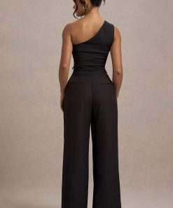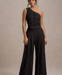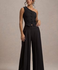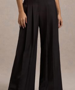 Seraphine London™ delivers a refined staple designed for effortless sophistication. Tailored from premium black stretch crepe, these high-waisted trousers feature soft pleating and a wide-leg silhouette that moves with grace. A hook-and-bar fastening with an invisible zip closure completes the look, perfect for both tailored daywear and after-dark styling.
