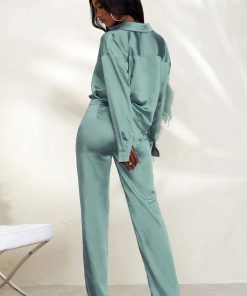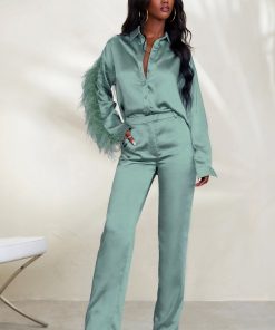 Pair with the coordinating satin shirt for an elevated ensemble that transitions seamlessly from daytime indulgence to evening elegance.