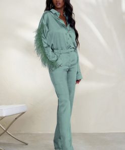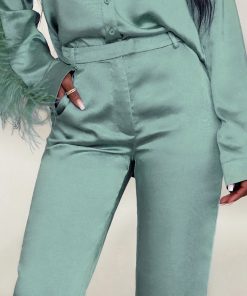 Seraphine London™ presents a refined take on statement tailoring with these sculpting wide-leg trousers. Crafted from premium satin in a soft sage green hue, the design features a flattering high waist and fluid silhouette that elongates the legs with effortless grace. Pocket detailing adds a tailored finish, making this piece as practical as it is polished.
