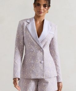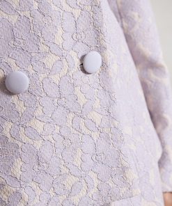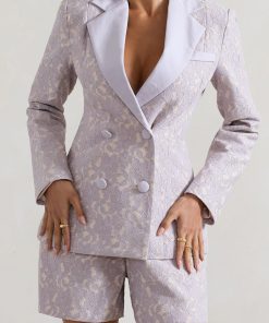 Seraphine London™ presents a tailored classic with a romantic twist. Crafted from premium lace crepe in a soft mauve hue, this structured blazer is defined by peak lapels, subtle shoulder padding, and self-covered buttons. The double-breasted silhouette is refined yet versatile — pair it with coordinating shorts or tailored separates for a confident, polished look.